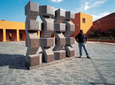 In 1981, Moroles purchased his first large diamond saw, which began his long term commitment to create a studio. In 1983, Moroles began his construction in Rockport. The workings of the studio became a family effort with the artist involving his parents Jose and Maria, his brother, Hilario, his sister, Suzanna, and brother-in-law, Kurt Kangas as integral parts of the Moroles Studio. This facility is unequaled in the country for the making of large scale sculptures. Read More…